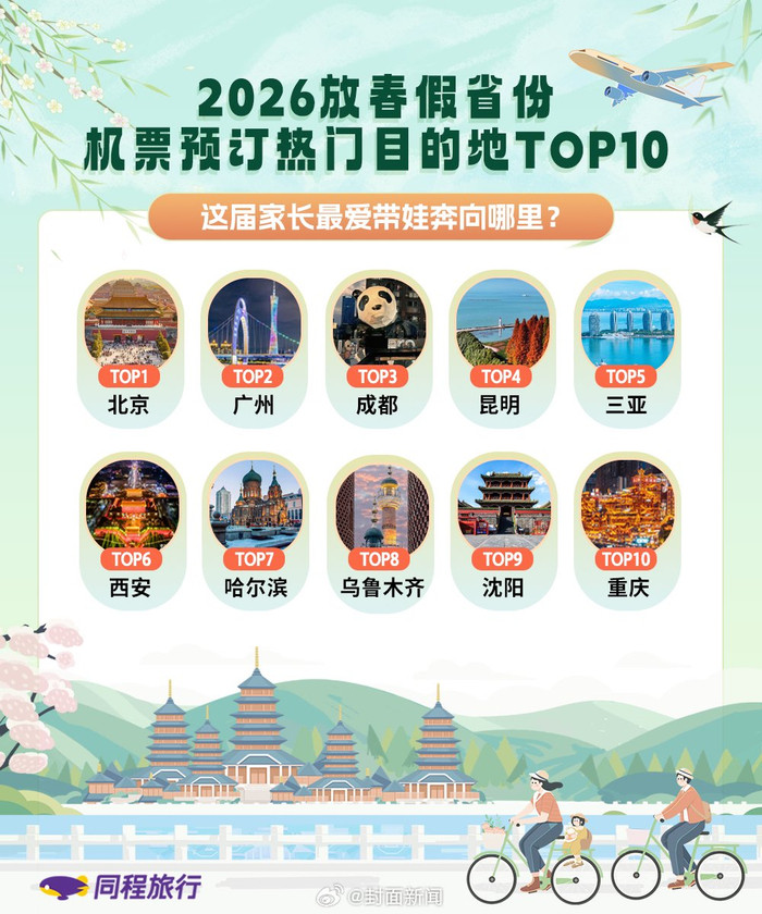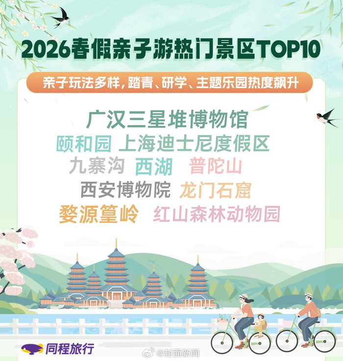 4月1号春假首日,第一批“抢跑”的家长纷纷带娃踏上旅程。据统计,本轮春假覆盖江苏、浙江、四川、安徽、湖南、湖北、贵州、广东等近十个省份,较大范围的春假落地也让亲子游市场迎来一波爆发。同程旅行数据显示,春假亲子游搜索及预订热度最高的TOP10热门景区包括西湖、婺源篁岭、红山森林动物园、九寨沟、广汉三星堆博物馆等。#春假亲子游热门景区TOP10四川占两个#