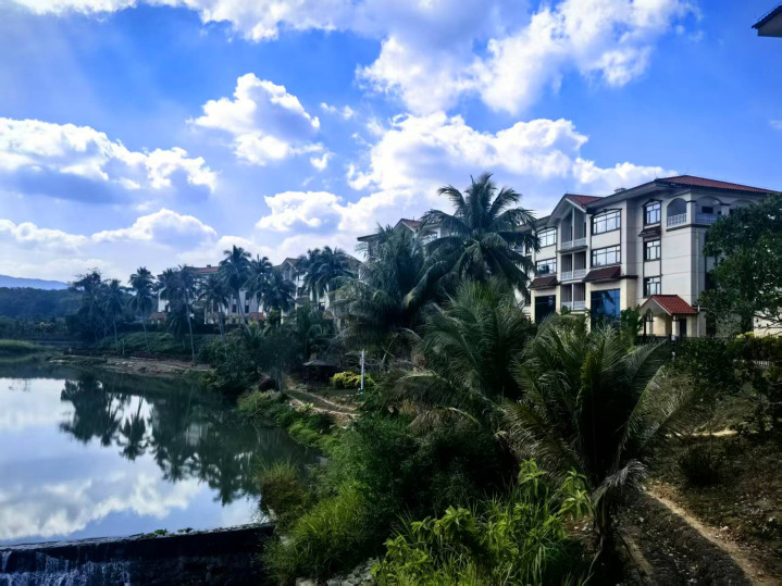 落脚汽车站附近的城市便捷酒店,在城区散步闲逛时,遇到在当地定居的一位河北大姐,丈夫是医生退休,被聘到当地医院坐诊几年了,据说本地医生人才缺乏,外来有资质的大夫,不愁有地方坐诊。大姐老两口由旅居变成定居,住所安置在当地较好的椰林阳光小区,大凉台对着昌化江,房间宽敞明亮,小区环境优美,一个售楼小妹带着参观了小区,还热情用她的电动车送我们回到住处。